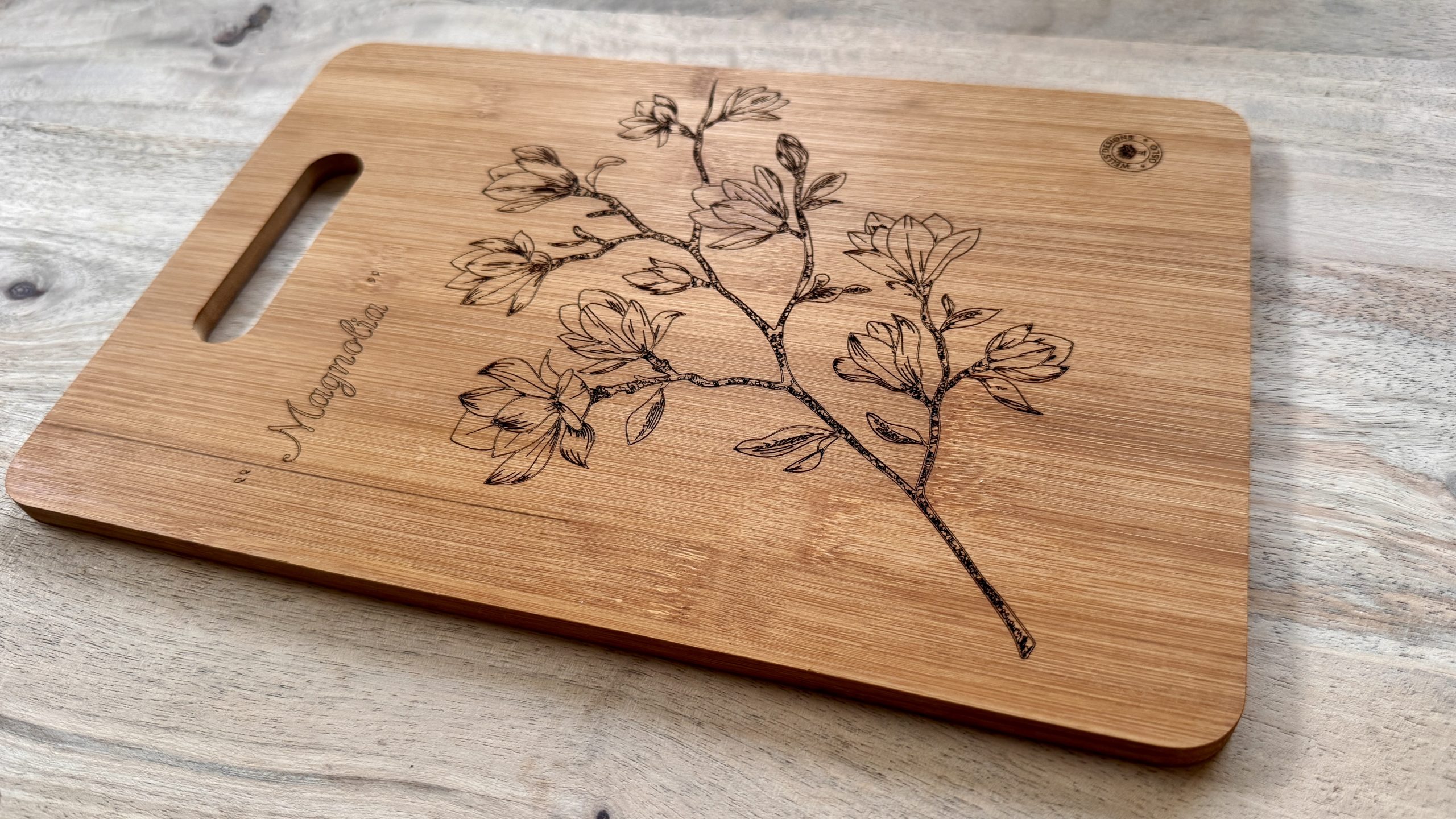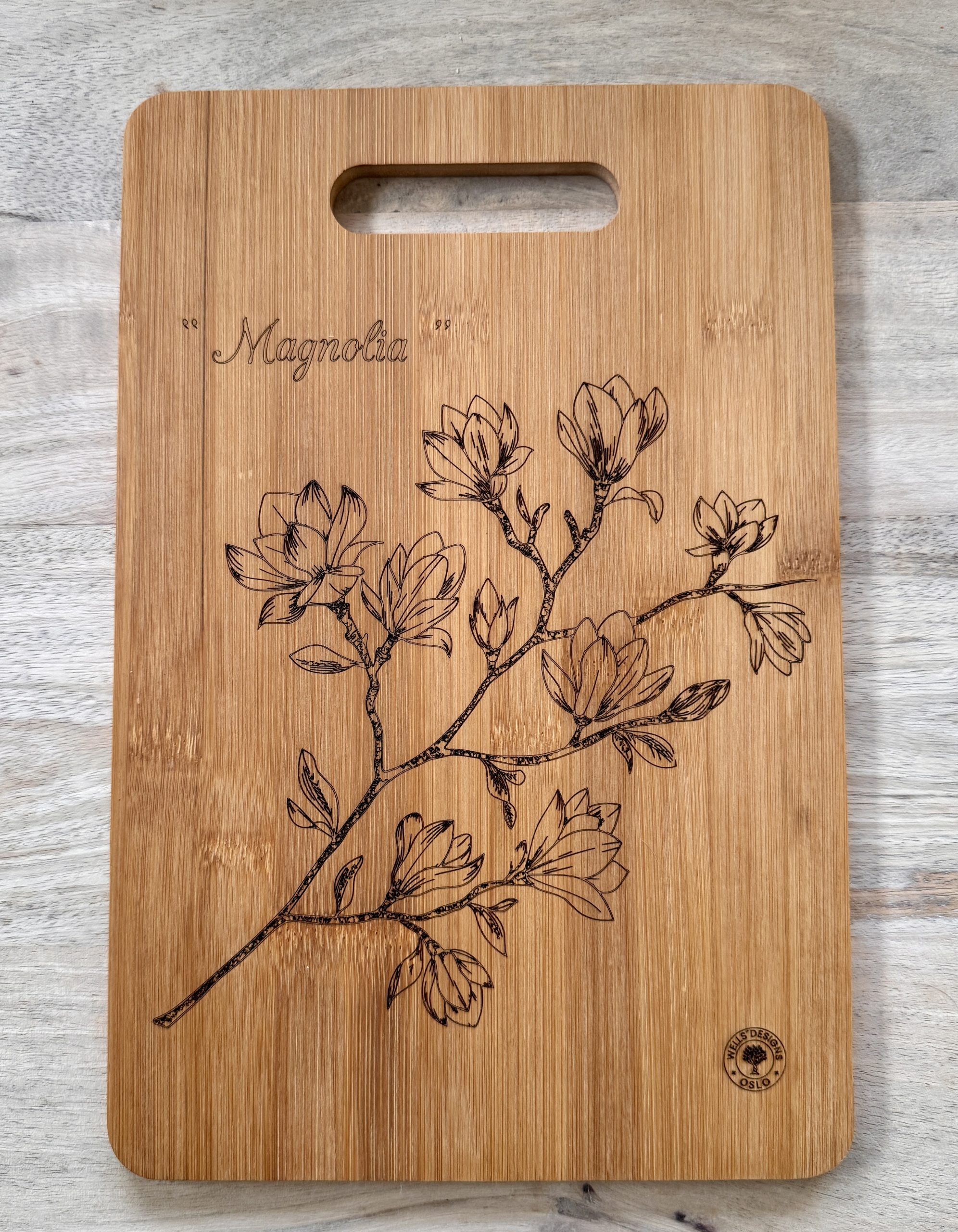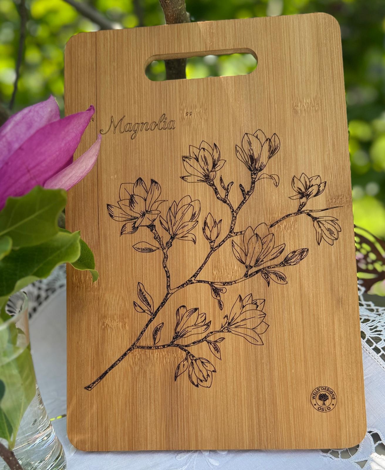 🌸 Personlig Skjærefjøl i Bambus med inngravert Magnolia 🌸
